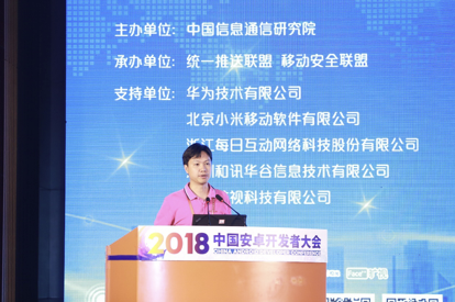 飞象网讯 2018年7月12日,由中国信息通信研究院主办的,统一推送联盟承办的中国安卓开发者大会在北京国际会议中心成功举办“创新引领、技术先行,优化生态,合作共赢“为主题,顺应行业发展需求,聚焦大数据、人工智能、流量入口等新技术,推动相关技术赋能垂直行业及关键领域,为国内中国安卓开发者搭建了一个沟通交流的平台。工业和信息化部李冠宇副司长,中国信息通信研究院刘多院长,何桂立副院长出席本次大会,来自社会各界共1000余人参加了本次会议。