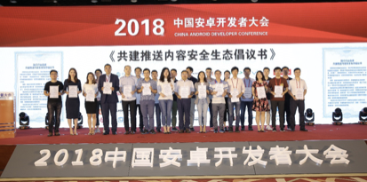 在大会主论坛上,统一推送联盟秘书长王景尧博士发表了题为“破解安卓碎片化的实践与思考”的主题演讲。分享了他对中国安卓生态的思考和实践。他指出,统一推送联盟的成立使得中国安卓智能终端厂商有机会共同探讨推送碎片化的问题,让中国安卓的开发者和从业者们看到了生态优化的希望和曙光。随后,统一推送联盟吴荻博士向与会人员分享了统一推送联盟积极倡导行业自律,推动推送内容安全健康生态的探索,并公布了首批支持《共建推送内容安全生态倡议书》的企业单位。